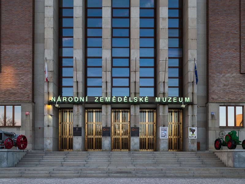 Il Museo Nazionale dell’Agricoltura offre una panoramica straordinaria dell’agricoltura e dei fenomeni ad essa legati. Vale senz’altro la pena visitare il terrazzo erboso sul tetto, che offre una vista insolita e spettacolare di Praga. Sul tetto si trova anche un piccolo spazio espositivo, un orticello con diversi prodotti agricoli ed un’arnia. Per riposare si può scendere nel cortile del museo, dove sono installate diverse panchine, un gazebo e anche dei recinti con animali. L’edificio del Museo Nazionale dell’Agricoltura è una monumentale struttura funzionalista degli anni’30 del secolo scorso. Insieme all’adiacente Museo Tecnico Nazionale, questo museo è parte integrante dell’ampio complesso architettonico nelle vicinanze dei Giardini di Letná.