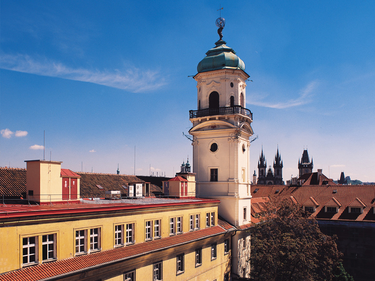 L’ampia area del Clementinum è uno dei più estesi complessi di edifici in Europa e fu originariamente costruito come collegio gesuita. Nell’ambito della visita guidata è possibile ammirare la Sala della Biblioteca barocca, spesso considerata la più bella al mondo. Terminata nel 1727, il suo fondo, ancora aperto, contiene oltre 27.000 volumi, per lo più di letteratura teologica in lingua straniera. La sala è decorata da stupendi affreschi a tema scientifico e artistico; nella sala sono esposti anche diversi globi di alto valore storico. Un’altra fermata importante lungo il percorso è la Sala della Meridiana, dove sono conservati gli strumenti astronomici originari per il calcolo del vero mezzogiorno. Momento culminante della visita è la Torre dell’Orologio astronomico che, con i suoi 68 metri di altezza, offre una vista indimenticabile sul centro e sul Castello di Praga.